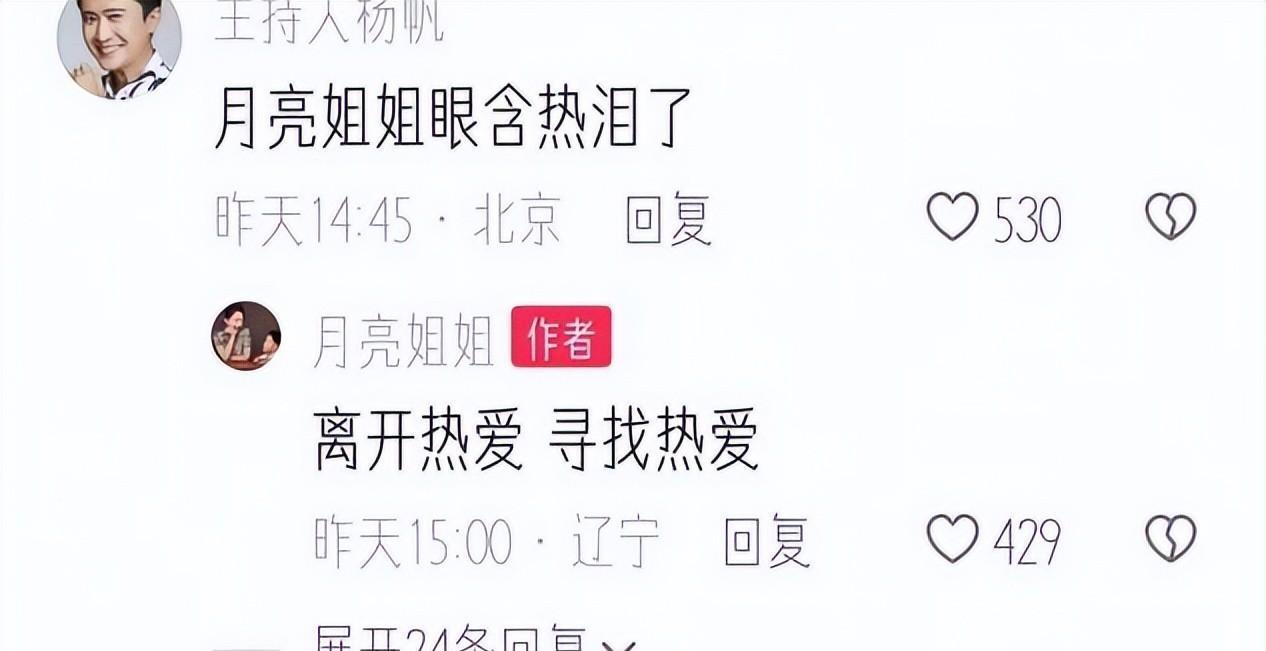 评论区里还有央视主持人杨帆也过来积极加油,也间接能看出来同事们对月亮姐姐也是祝福更多。