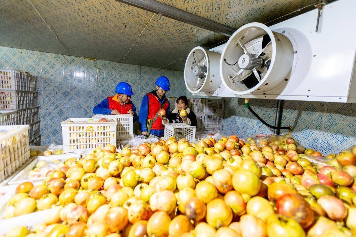 “燕飞来”志愿者服务队队员排查石榴种植户冷库用电隐患。王磊摄