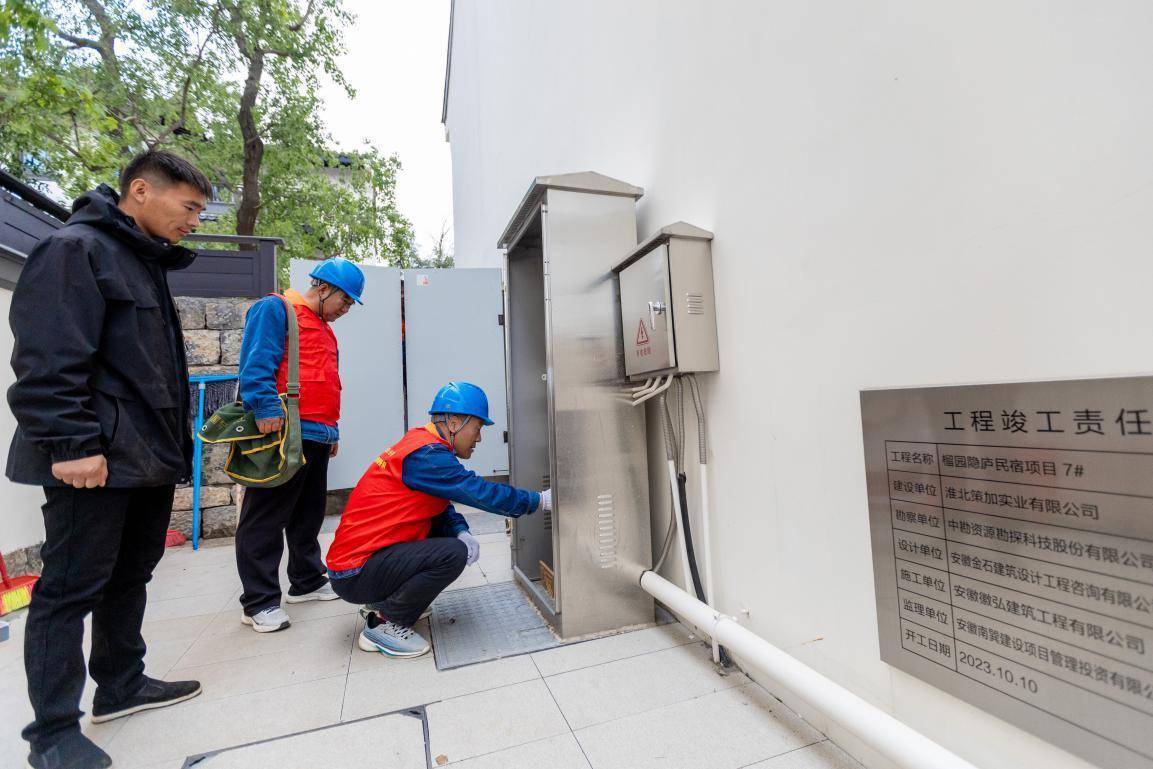 2025年3月,蘧庐民宿建设之初,负责人邵景卫向淮北供电公司烈山中心供电所提出了用电申请,烈山中心供电所当天就安排专业技术人员到现场勘查,制定了配电施工方案。从台区架设一条0.4千伏4*300平方毫米的低压电缆线路80米,增容85千瓦,满足蘧庐民宿用电需求。民宿建成后,烈山中心供电所技术人员上门对配电工程进行验收。