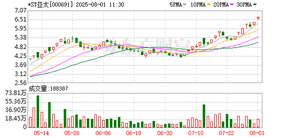 *ST亚太(维权)再度涨停,7个交易日内录得4个涨停,累计涨幅为28.02%,累计换手率为33.47%。截至10:45,该股今日成交量1523.46万股,成交金额1.01亿元,换手率4.71%。最新A股总市值达21.56亿元。